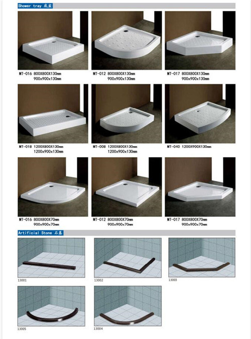 이 품목은 구조, 부드럽게 한 유리, 손잡이, 기계설비, 인공적인 돌, 물 정지 지구로 이루어져 있습니다. 우리는 구조로 고품질과 건장한 알루미늄 합금 그것을 더 안전한과 안정되어 있는 하는 샤워실을 지원하기 위하여 사용합니다. 스테인리스 구조는 또한 선택했습니다 일 수 있습니다. 구조는, 색깔 주문을 받아서 만들어질 수 있습니다, 검게 합니다, 장미 금, 거울, 짜개진 조각, 등 닦습니다. 다이아몬드 예리한 디자인은 공간을 절약하고 합리적인 사용중에 있는 공간을 만듭니다. 그것은 인공적인 돌 쟁반에 의해 sharped, 그러나 당신이 다른 샤프를 원하는 경우에, 주문을 받아서 만들어질 수 있습니다.
