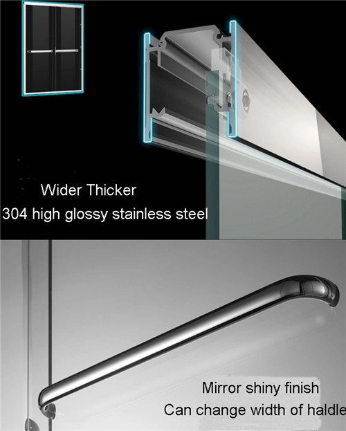 열리는 작풍을 미끄러져서, 모두가 열리기 위하여, 문 활주 안의 1개의 측 다른 문 미끄러질 수 있는 쌍방 문이, 더 넓은 입구를 제공합니다. 1개의 안의 문 사용 스테인리스 물자, 긴 샤프 및 디자인에 손잡이는, 다른 외부 진짜로 그 약한을 위한 helpfui 또는 무능입니다. 표면은, 거울, 느낌 벌금으로 밝고 그리고 청결하다 퇴색하지 않으며 반반하게 하지 않습니다. 미끄러져서 문 활주가 롤러에 의하여 매끄러운 쉽게 시킵니다. 롤러 및 구조는 건장하고 튼튼한 높은 순수성을 가진 고품질 satinless 강철을 또한 이용합니다. 더 많은 것은인 무엇, 손잡이, 구조, 롤러의 크기, 색깔 및 샤프는 주문을 받아서 만들어질 수 있습니다.