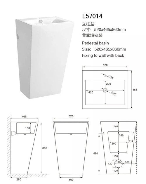소형 때문에, 주춧대 물동이는 특히 소형을 가진 목욕탕에서 이용된 각종 공간에서, 사용되게 적당합니다. 단순한 설계로, 배수장치 디자인 성분은 전부 란에서 숨겨지습니다, 주춧대 물동이는 청결하고와 단정한의 감각을 줍니다. 그것에는 온건한 고도가 있습니다, 사람들은 더 쉽고 및 편리한 세척하는 손을 만드는 그것의 앞에 자연적으로 서 있을 수 있습니다. 그리고 설치하는 것은 쉽, 뒤로 벽으로 막기 위하여 고치.